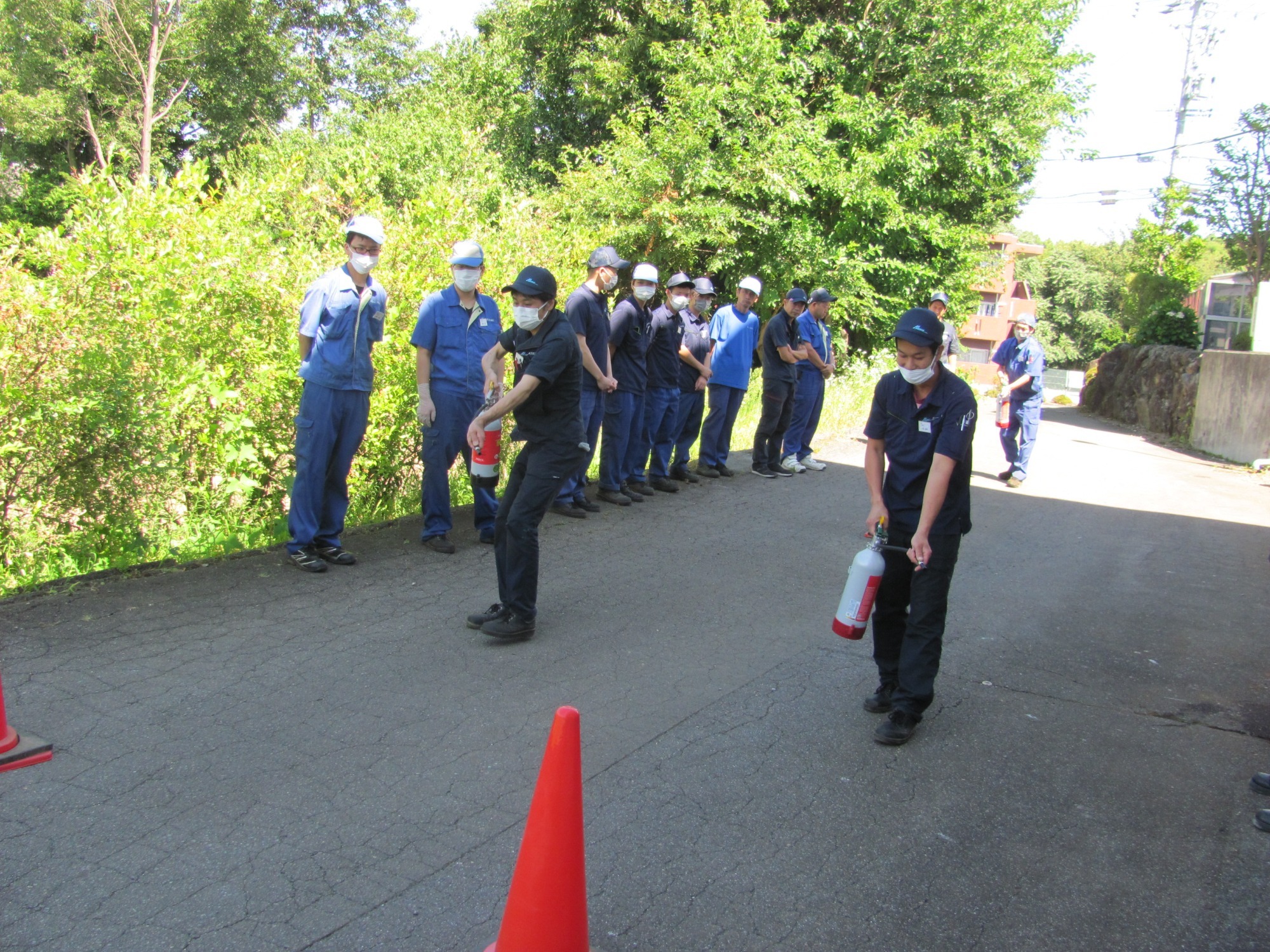 今年は火災を想定した、通報・初期消火(消火器・消火栓)・避難訓練を実施。